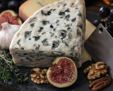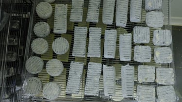 Ces beaux fromages sont sublimés par l'ajout dans le caillé de penicillium qui leur confère cette couleur bleuté. Il est ensuite piqué pour favoriser l'aération est le développement plus ou moins homogène de la moisissure. Certains fromages vont développer cette couleur naturelle sans ensemencement.